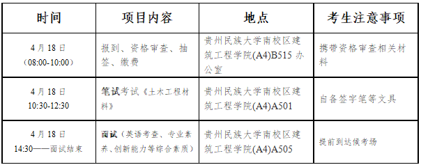注意:报考土木水利专业同等学力考生,请于2026年4月17日8:00-12:00报到,进行资格审查,14:00-18:00加试(笔试考试)《环境保护概论》、《土木工程施工》。